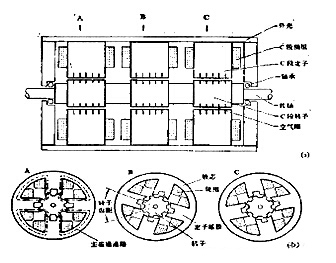 (4) 多段磁阻式步進電機。多段磁阻式步進電機沿著它的軸向長度分成性能。